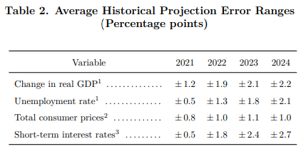 Table 2. Average Historical Projection Error Ranges (Percentage points)