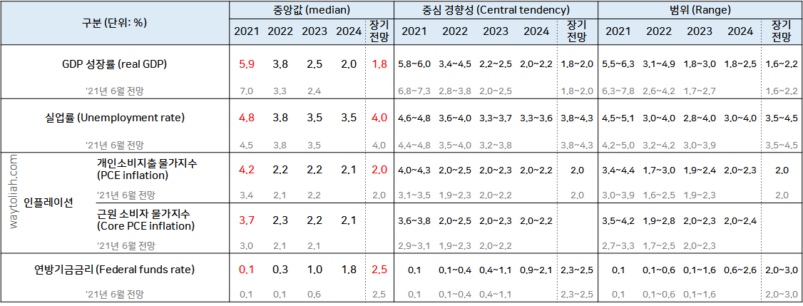 - 출처 : federalreserve.gov/monetarypolicy/fomcprojtabl20210922.htm