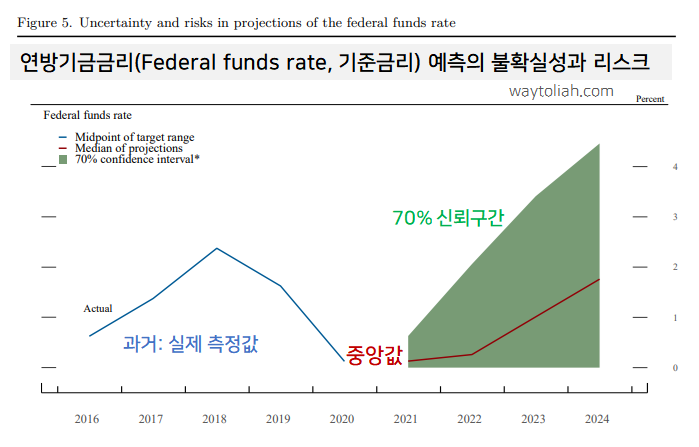그림5. 연방기금금리(federal funds rate ≒ 기준금리) 예측의 불확실성과 위험
